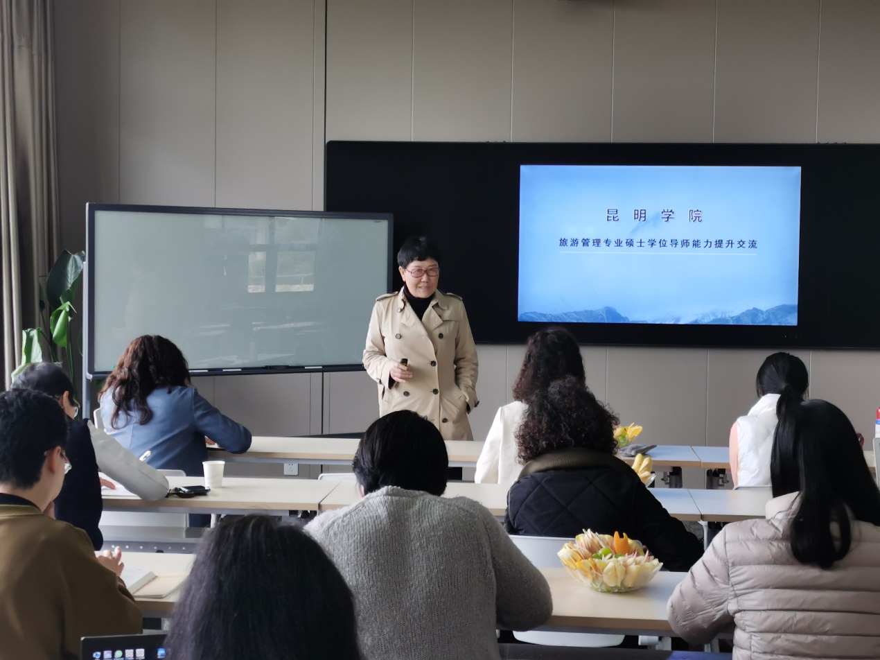 讲座中吕宛青教授为世界杯官方网站入口202617名硕士研究生导师介绍了云南省旅游管理专业硕士学位授权情况,以及正在争取授权的各公司情况;以云南大学为例详细讲解了培养方案设置各环节的注意事项和建议;解析了全国旅游管理专业学位研究生(MTA)教育指导委员会对MTA人才培养方案的约束性文件;分解了国家社科项目与MTA论文在选题方面的差异点和共同点,详细阐述了高价值MTA论文选题应具备的视角;最后贴心讨论了论文写作中的一些常见问题,并与在座硕士研究生导师交流了公司产品方面的经验和建议。讲座结束后,参训硕士研究生导师与吕宛青教授就公司产品、团队建设相关问题进行了深入交流。