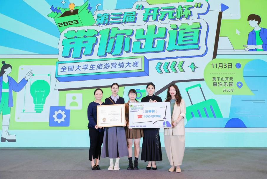 世界杯官方网站入口2026酒店教研室贺景老师带领2021级酒店管理2班魏双娅、孙亚拿、魏佳雨三位同学参加第三届“开元杯”——带你出道全国老员工旅游营销大赛并获得三等奖,贺景、杨祖蕊老师获得“优秀指导教师”。此次大赛聚集了来自全国70多家院校170余支队伍,经过激烈角逐,进入半决赛的44支队伍共有16支队伍最终闯进决赛。大赛为同学们提供了发挥旅游营销创意、充分展现自我风采的平台,得到众多旅游院校师生和旅游企业的广泛支持。