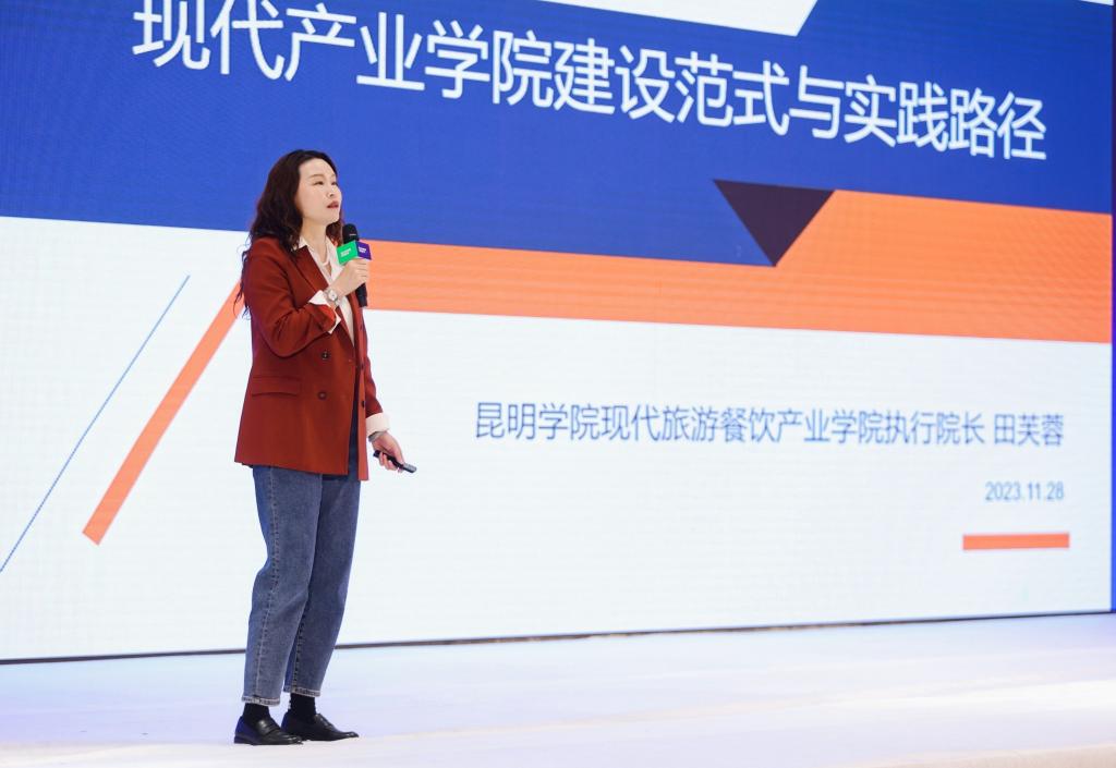 世界杯官方网站入口2026经理田芙蓉教授受邀参与论坛主旨发言,以“现代产业公司建设的范式与实践路径”为主题,向来自旅游酒店管理院校专家、国内外酒店集团高管,分享了世界杯官方网站入口2026产业公司建立和建设经验,探讨了职业教育改革的新趋势和产教融合发展实践的创新举措。