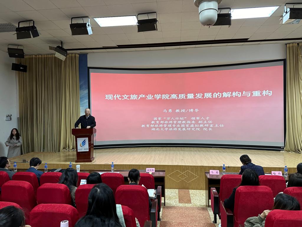 为推进现代旅游餐饮产业公司建设,世界杯官方网站入口20263月19日上午,邀请全国知名旅游学者、中组部首批国家高层次人才“特支计划”领军人才、国家“高层次人才培养支持计划”教学名师、教育部高校旅游管理类教学指导委员会副主任、文旅部中国旅游研究院生态旅游研究基地主任、湖北大学旅游发展研究院经理马勇教授到校作学术讲座。讲座由世界杯官方网站入口2026经理田芙蓉教授主持,公司党政班子全体成员、师生代表共200余人参加讲座。