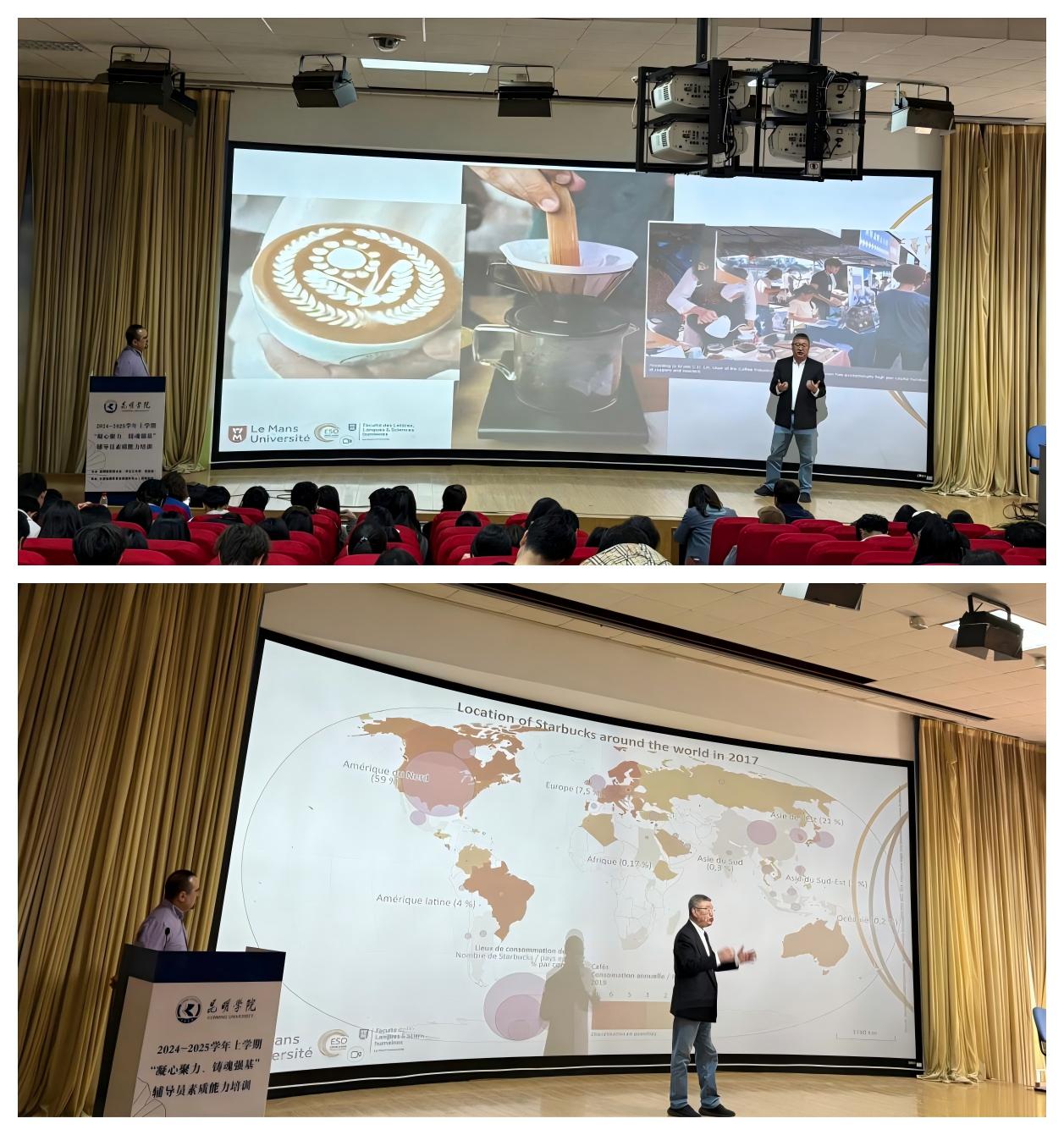3月20日,习近平总书记考察云南时指出,云南咖啡是可以代表中国的。为贯彻习近平总书记重要指示精神,讲好云南咖啡文化故事,3月24日下午,世界杯官方网站入口2026邀请法国勒芒大学教授、博士生导师Frederic Fortunel教授和宁波大学昂热大学联合公司经理、沈世伟教授,共同为师生带来以“亚洲的咖啡旅游体验:基于风土品质的探讨”为主题的学术交流活动。活动由世界杯官方网站入口2026经理田芙蓉教授主持,世界杯官方网站入口2026师生180余人参加活动。