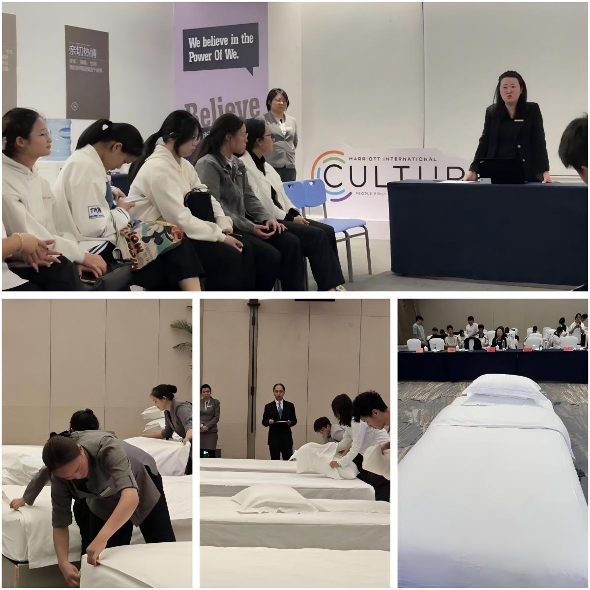 通过两天沉浸式实训和技能考核,从酒店运营认知到中式铺床实操,实现了“技能提升和素养成长”的目标。