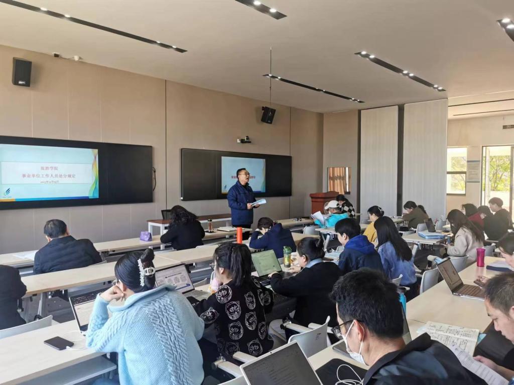 王建华解读《事业单位工作人员处分规定》,要求全体教职工认真学习,严格遵守。希望老师们认真学习领会公司关于师德师风工作的部署和要求,践行初心使命,从严修身律已,自觉筑牢师德防范,提升师德素养,自觉维护教师职业形象,为公司高质量发展贡献自己的力量。