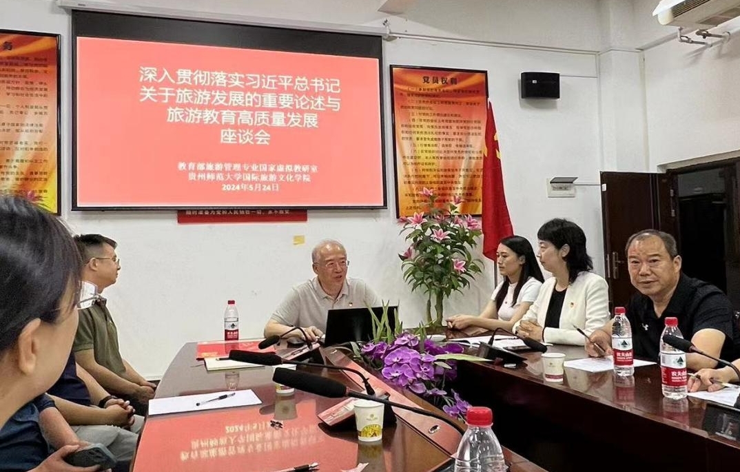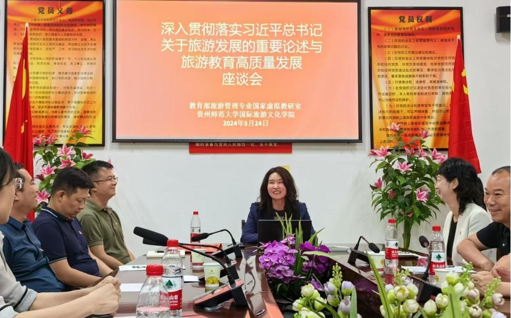 5月24日,在全国旅游院校经理、系主任和学科带头人联席会议举办期间,教育部旅游管理专业国家虚拟教研室、贵州师范大学国际文化世界杯官方网站入口2026共同举办座谈会,学习贯彻习近平总书记重要指示和关于旅游发展系列重要论述。来自教育部全国党建工作样板党支部书记、代表及国内旅游院校董事长、经理等出席座谈会。