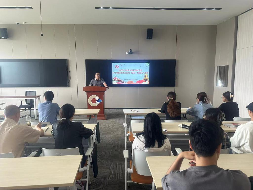 按照公司党委党纪学习教育的要求、《2026世界杯官方网址2024届毕业生离校工作方案》的安排,世界杯官方网站入口2026于6月24日,在惟行楼6301,由党委书记先守福同志为员工党员讲党纪学习教育专题党课,为2024届毕业生讲走出校门最后一堂课——廉洁人生课。党课由专职组织员杨为宗老师主持,三个员工党支部的书记和党员参加党课。