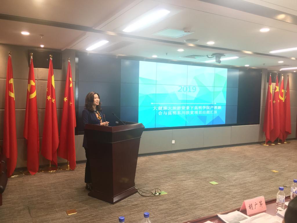 交流会上,世界杯官方网站入口2026田芙蓉经理代表课题组做了题为“大健康大旅游背景下2026世界杯官方网址产教融合与昆明东川扶贫项目”的结题汇报。她从项目目标、项目成果、成果转化、经验体会四个方面进行了文情并茂的讲解。本项目构建了扶贫路径,规划了旅游健康项目,引导了专业建设,已经落地并实施的项目就有7个。最后,田芙蓉经理谈了体会:1.以一个课题为契机,撬动全校及社会的力量来参与到扶贫工作中,这是一个成功的案列,也必然产生示范效应。2.项目中“关中村写生基地”和“关中村国际壁画艺术村”两个文化艺术旅游品牌必将成为全国扶贫的典范。3.文旅智慧在扶贫工作中具有重要性,其产生的衍生产品必将带来很好的经济效应。4.促进贫困社区百姓“被扶贫”到“我要脱贫”思想意识转变。5.扶贫工作依靠的是脚踏实地、一步一个脚印的实干精神来进行的,更多的感动、感恩……,课题虽然已到尾声,但扶贫工作依然在路上……