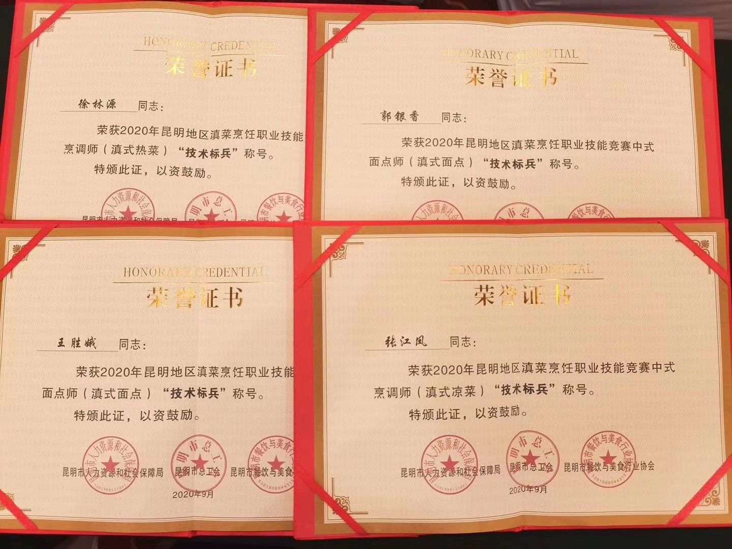 世界杯官方网站入口2026委派引进人才刘福灿大师组织员工集训、组建代表队并指导师生参赛。与各酒店工作经验很丰富的参赛代表同台竞技,游公司代表队表现优异,不负厚望,取得优异成绩,喜获佳绩。 世界杯官方网站入口2026荣获昆明市人力资源和社会保障局与昆明市总工会颁发的二等奖奖牌及证书;参赛选手共获奖牌5枚,荣誉证书5份,其中徐林源、张江凤、郭银香、王胜俄同学分别荣获技术标兵及1000元现金奖励。