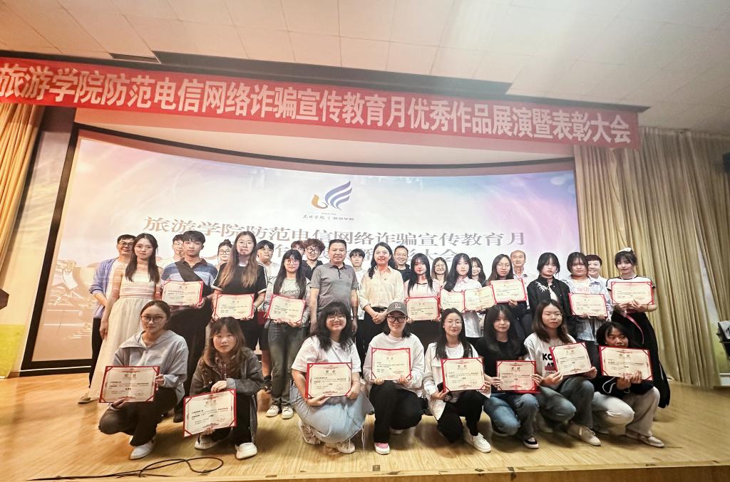 公司团委书记赵静宣布了2024年防范电信网络诈骗宣传教育月活动获奖名单。经过班级赛、院级评比,共评选出防范电信网络诈骗短视频、演讲、手抄报共35个优秀作品。获得短视频比赛、演讲比赛、手抄报比赛6个一等奖作品参加展演。与会领导和老师为获奖员工代表颁奖。