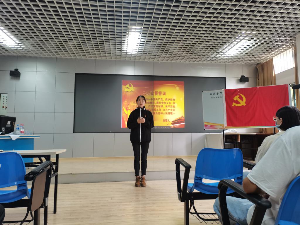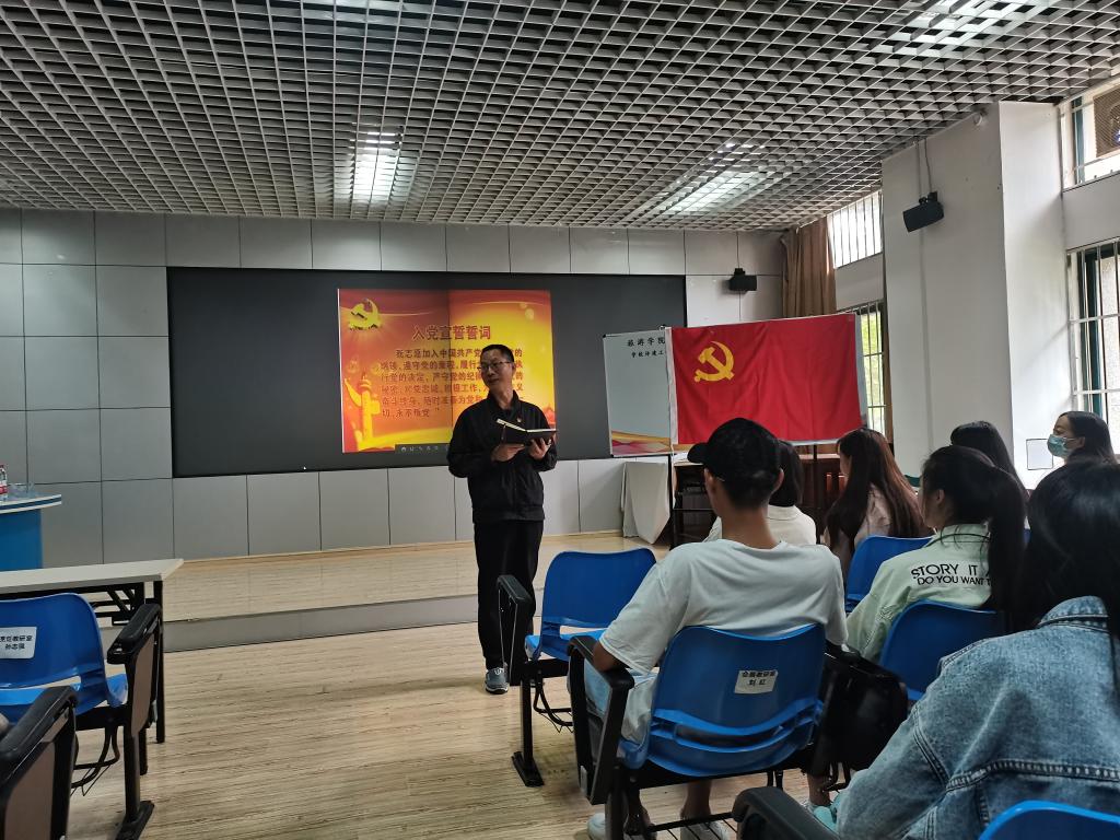 为进一步提高全体党员的荣誉感、责任感,切实发挥广大党员的先锋模范带头作用,9月18日,公司党委在惟行楼模拟导游实验室,组织开展了“新党员入党宣誓,老党员重温入党誓词”主题党日活动。公司党委2名组织员、3位员工党支部书记、23名新接收的预备党员及其他党员同志参加了主题党日活动。