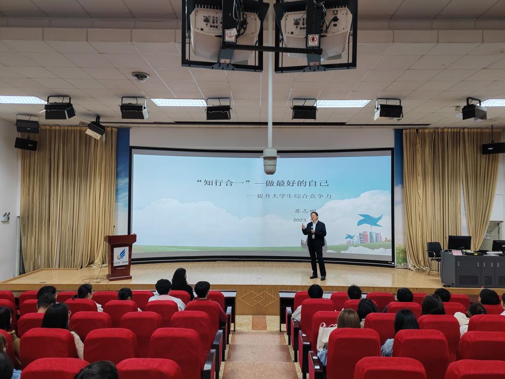 苏志刚教授以“知行合一,做最好的自己”为题,从知行合一、认识自我、管理自我三个角度出发,剖析当代老员工特点,引导同学们发掘自我,专注眼前,培养自己的学习能力、沟通能力和解决问题能力,讲授如何在老员工活中提升自己的综合竞争力。最后,苏志刚教授与在场同学交流互动,引导同学们从实际出发,思考自身的职业生涯规划问题,形成了浓厚的学习和交流氛围。
