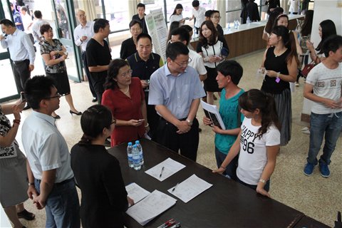 为了给2015届毕业生搭建优质就业平台,推动所有毕业生顺利就业,7月1日上午,世界杯官方网站入口2026在图书馆附楼举办了2015届毕业生专场招聘会,40多家国内外企业到场参加招聘。公司党委陈世波书记、孙勇副书记、熊晶副董事长、郭华副董事长、刘海发副董事长亲临招聘现场,与用人单位亲切交谈、与员工亲切交谈,了解员工就业情况,推荐公司毕业生。