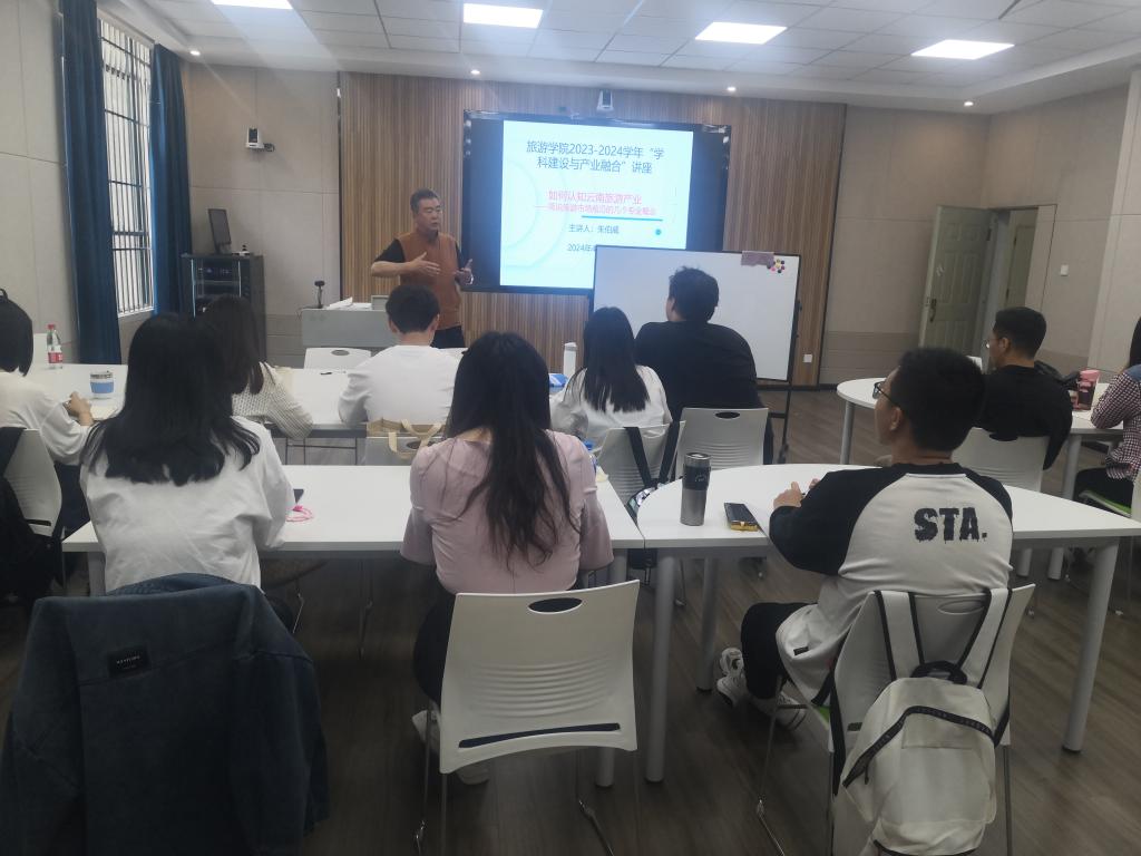 2024年“科研素养和社会实践融合”系列讲座第四讲于4月16日下午在惟行楼1105开讲。讲座邀请昆明市旅行社行业协会朱伯威会长作云南旅游产业的深入解读。讲座由世界杯官方网站入口2026经理田芙蓉教授主持,相关专业本科生、研究生和部分教师50余人参加讲座。