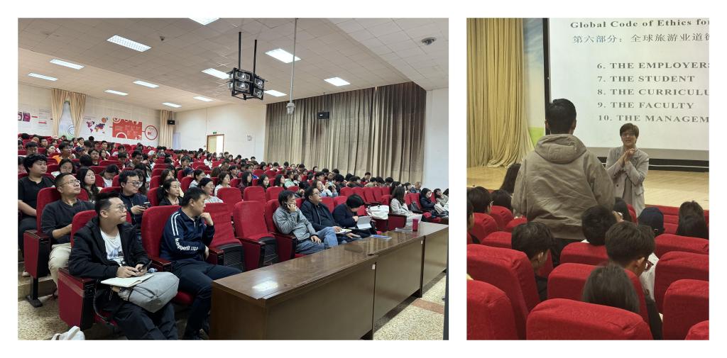 为推进旅游伦理教育,世界杯官方网站入口2026(以下简称公司)于2025年5月27日在3D实验室,举办“全球旅游伦理规范”主题讲座。讲座邀请宁波大学热昂大学联合公司旅游系副主任谢慧孜担任主讲嘉宾,公司经理田芙蓉教授主持讲座,公司100多名师生参加讲座。